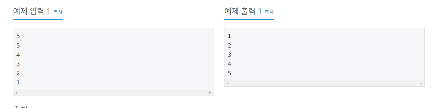 N개의 수가 주어졌을 때, 이를 오름차순으로 정렬하는 프로그램을 작성하시오.