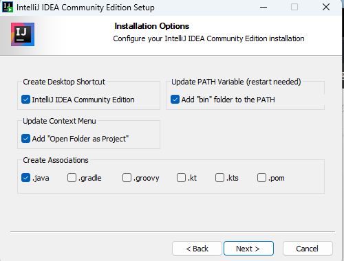 - Create Associations: 프로그래밍 언어 확장자 선택