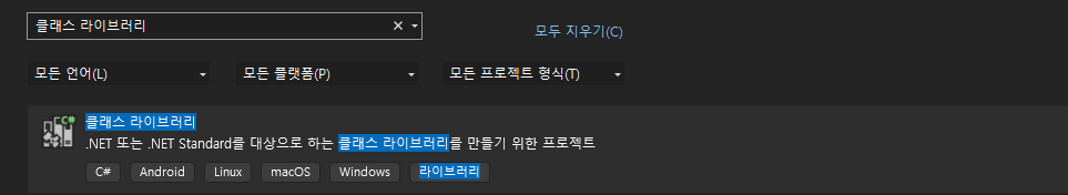 [클래스 라이브러리. NET]을 선택하여 새로운 프로젝트를 생성합니다.