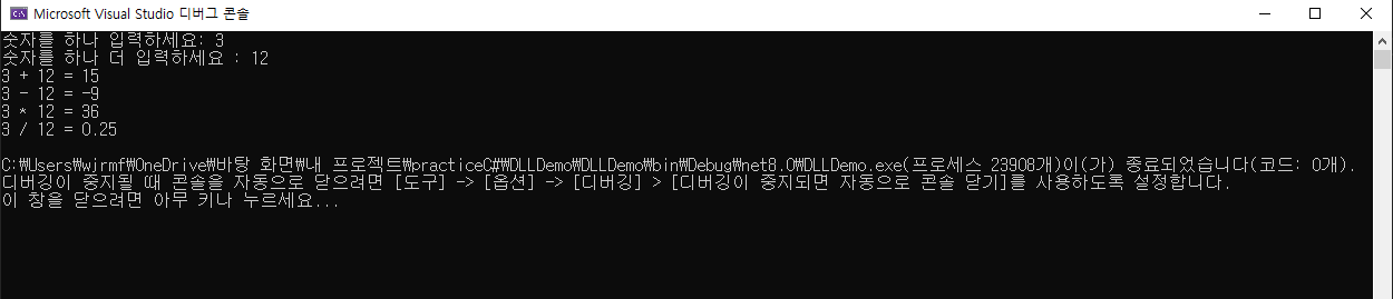 Console.Write("숫자를 하나 더 입력하세요 : ");