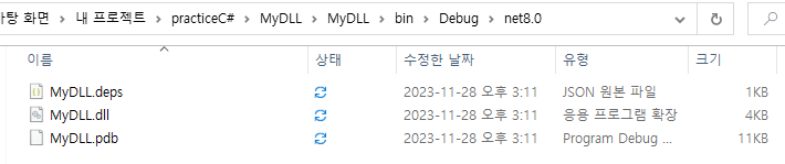 빌드가 성공하면 DLL 파일은 프로젝트 폴더 아래 있는 'bin' 폴더의 하위 폴더에 저장됩니다.