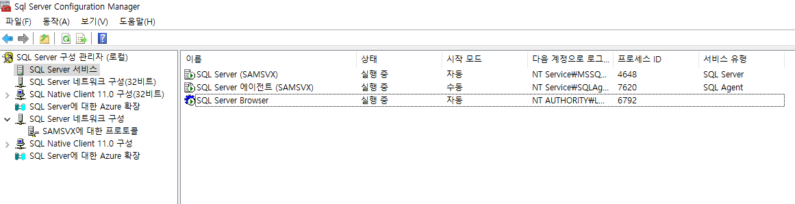- 확인 후, SQL Server 서비스 재시작(중요)