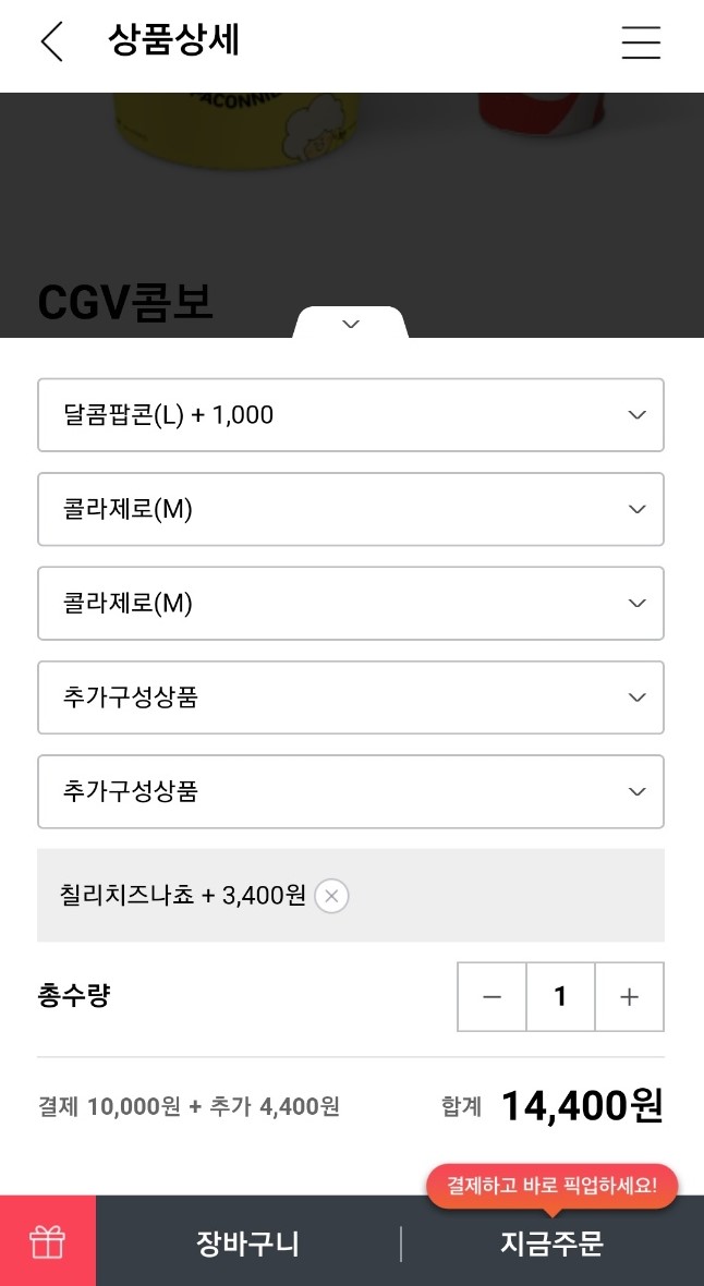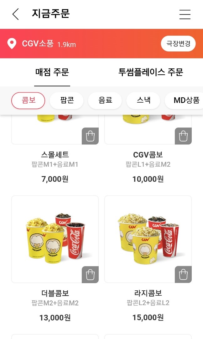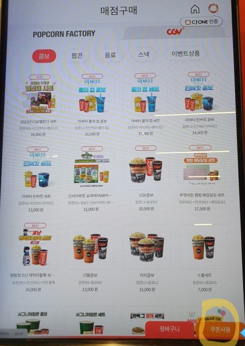 (사용가능한 콤보 메뉴는 CGV콤보, 더블콤보, 라지콤보만 사용가능합니다.
