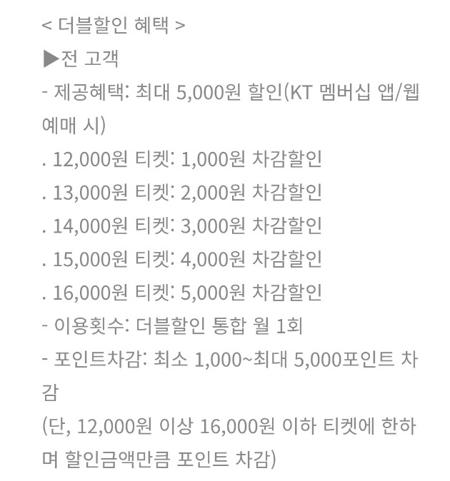 간단하게 12000~16000원까지 티켓에 한하여 할인이 가능하며