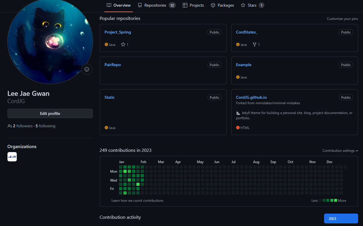 매일 commit을 해서 잔디를 꽉 채우는 게 목표이고, 나만의 작은 프로젝트로 repository를 채우는 게 다음 목표입니다.