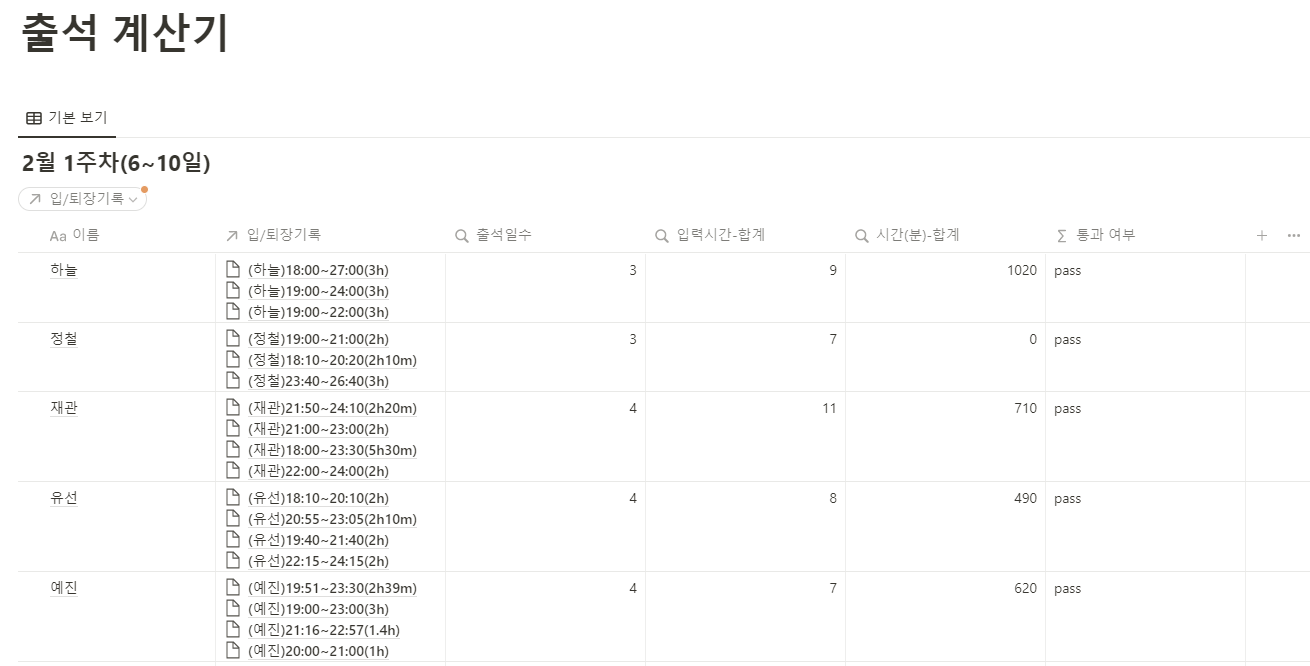 다행히도 2 section 동안에는 지각한 적이 단 한 번도 없었네요. 😊