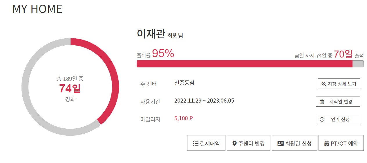 공부를 하는 데 많이 앉아있다 보니까 체력 증진을 위해서, 그리고 스트레스도 푸는 겸 부트캠프를 하기 전부터 헬스장을 열심히 다니는 중인데, 출석률이 높아서 뿌듯한 마음으로 올립니다 :)