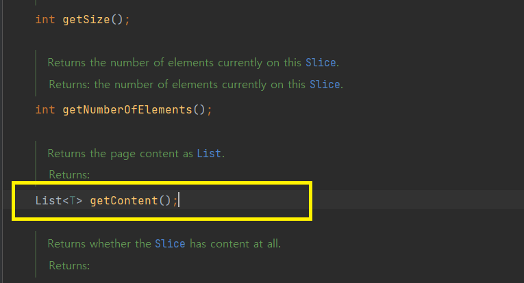 Page 클래스는 getContent() 메서드를 통해 클래스 안의 요소들을 리스트화 시킬 수 있다.