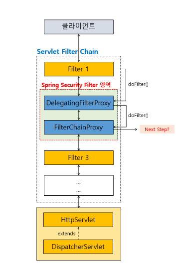 각 필터는 요청을 검사하고, 필요한 보안 작업을 수행한 뒤, 다음 필터로 전달하거나, 보안 요구사항에 맞지 않는 요청의 경우 처리를 중단한다.